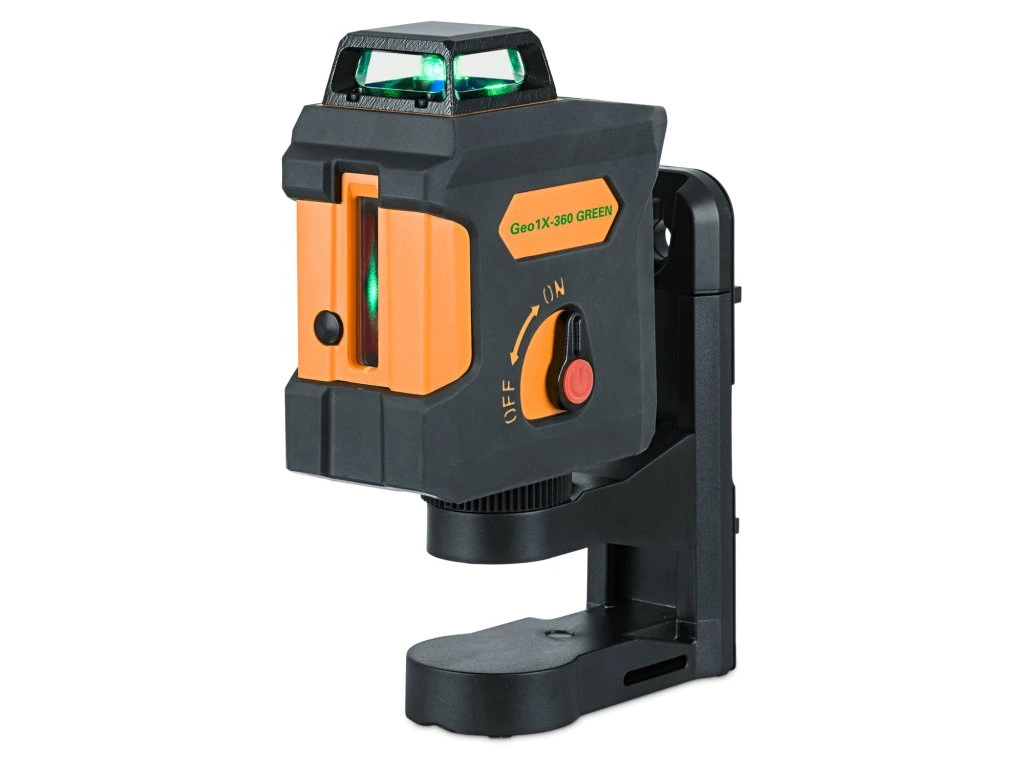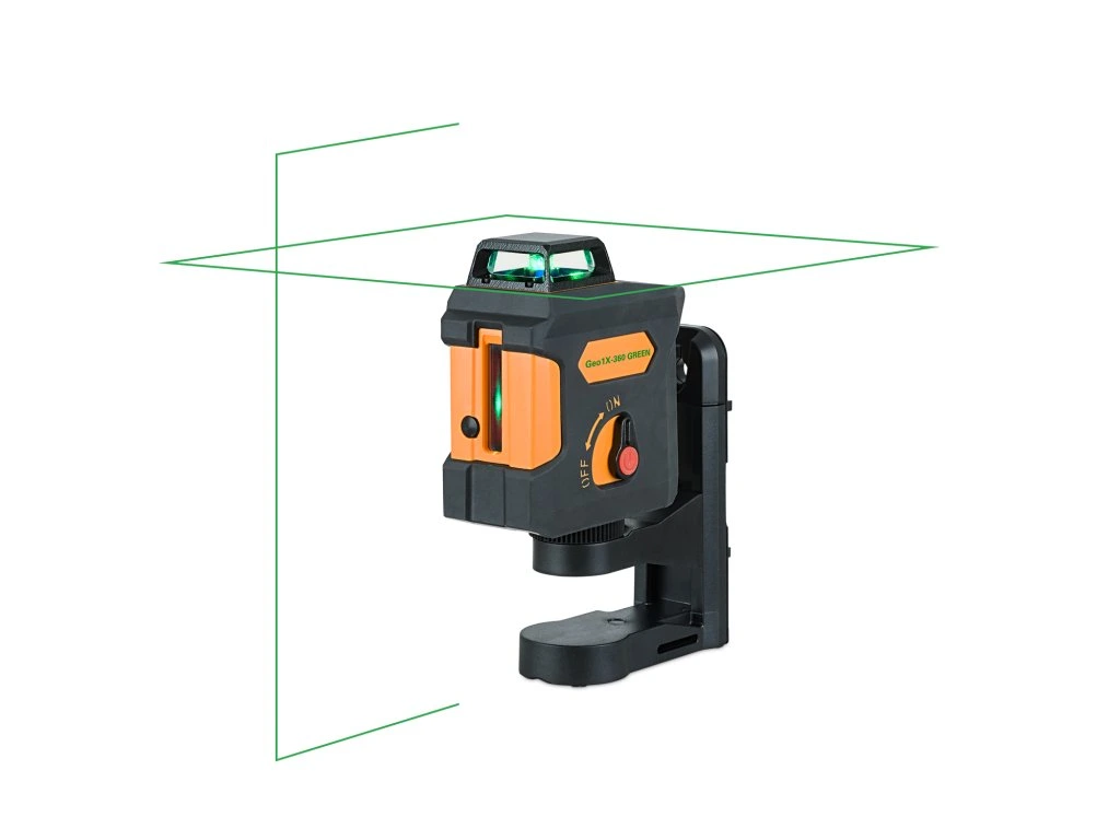 Geo1X-360 GREEN je samourovnávací laser se zeleným paprskem, který vytváří horizontální linii kolem dokola celé místnosti a kříž na jedné stěně s velice dlouhou vertikální linií 135° za zenit. Paprsky s vynikající viditelností lze zapínat samostatně a tím šetříte baterie.