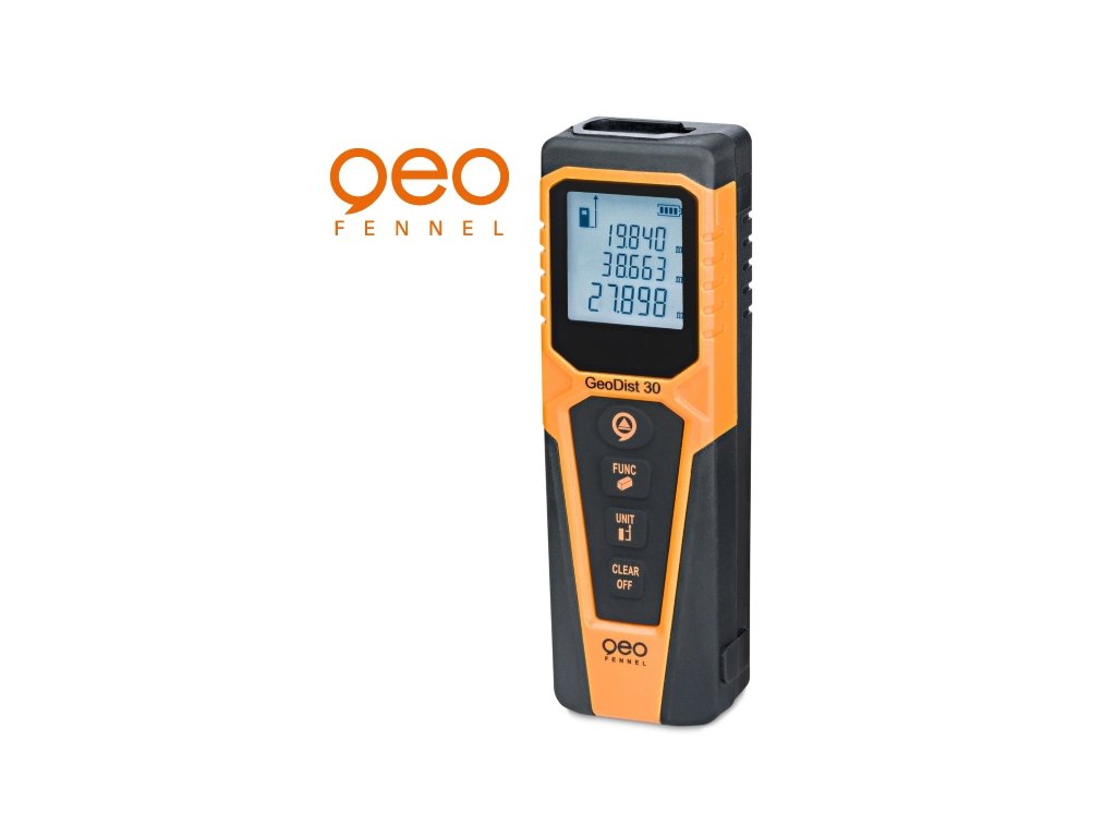 GeoDist30 je nejmenší z dálkoměrů od výrobce GeoFennel ze SRN. Má dosah 30m s přesností +/- 2mm a rozsah měření od 5 cm do 30 m. Vzdálenost lze měřit od horní nebo spodní hrany přístroje. Lze s ním počítat i plochy a kubatury.