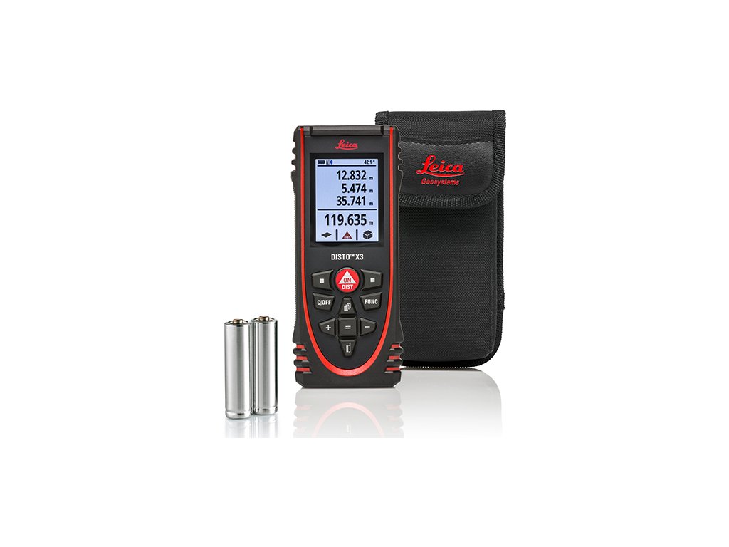 Disto X3 je laserový dálkoměr z nové řady odolných a spolehlivých dálkoměrů pro venkovní měření i pro zaměřování interiérů s dosahem 150m a přesností +/- 1 mm. Má zabudovaný Bluetooth i sklonoměr s neomezeným rozsahem 360° a je odolné proti tekoucí vodě a prachu (IP65). Navíc existuje možnost dálkoměr rozšířit o adaptér DST360, se kterým se změní na přístroj pro měření 3D dat.